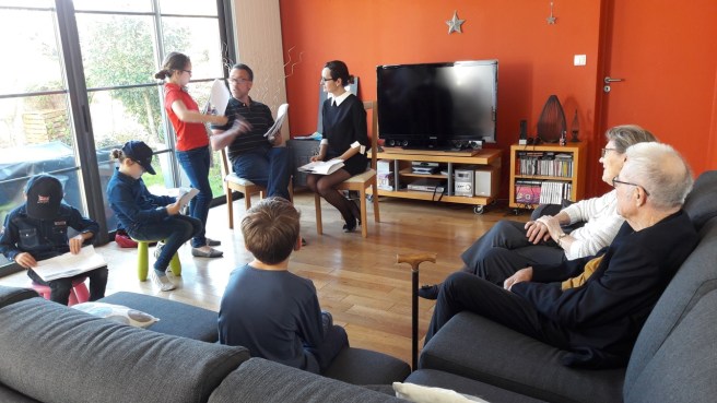 « J’ai aimé ce projet « de famille » clé en main : les échanges en famille et avec l’auteur sur le texte, sur les manières de l’interpréter. J’ai apprécié qu’il soit positif sur nos propositions, sur nos actions. J’ai aimé tous les préparatifs et l’excitation de la représentation. J’ai aimé aussi la prolongation de l’après-midi autour d’un jeu. »