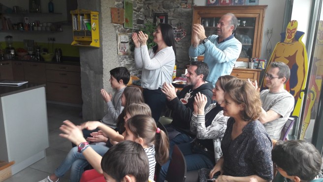 « J’ai été fière de la prestation de mes fils et de la décontraction du plus jeune, j’ai été étonnée que nos invités nous félicitent autant et avouent avoir été émus, j’ai envie de refaire cette lecture pour notre famille qui habite loin. »