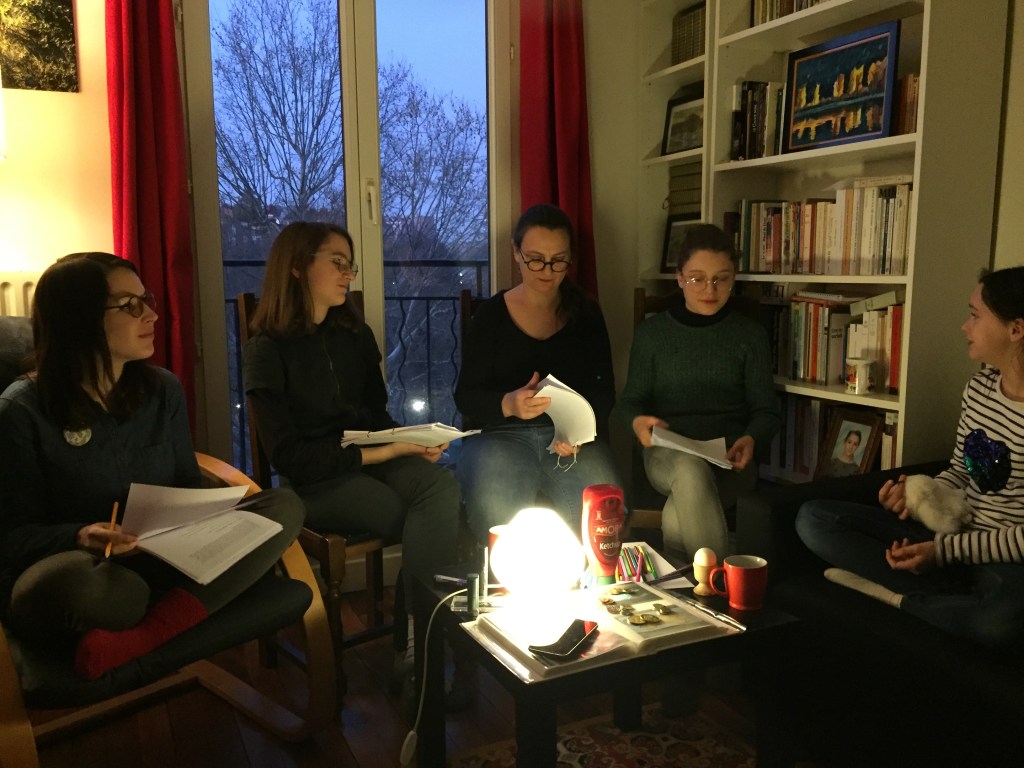 « Il y a quelque chose de très émouvant dans le dispositif « Lire et dire du théâtre en famille ». Dans le fait de venir chez les gens, de les cueillir presque au réveil le week-end ou en début de soirée après une journée de travail. Dans la confiance dont les familles font preuve en ouvrant leur chez soi à des étrangères d’abord, puis en se lançant dans un exercice inhabituel pour eux. Quelque chose d’une grande intimité s’installe presque immédiatement et on est émue d’être une témoin privilégiée de ce qui va se donner à voir des dynamiques familiales à travers ces moments de lectures et de discussions. J’ai été particulièrement touchée de voir les corps et les traits se détendre au fil des moments successifs, le plaisir du jeu prend petit à petit toute la place. D’observer comment, sur un coin de table, entre les miettes de croissants et les tasses de café, parce qu’il y avait le plaisir du jeu, soudain, les mots se décollaient de la page et le théâtre était là. Cette expérience fait partie des moments qui me rappellent toujours à nouveau pourquoi j’ai choisi de faire ça, écrire. »