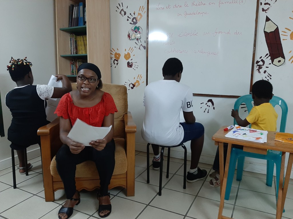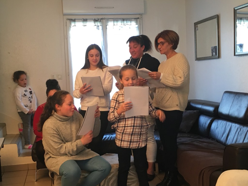 “La famille a lu “Un chien dans la tête” de Stéphane Jaubertie, grande famille très motivée, beaucoup d’invités dans leur salon, super moment de partage. Les résidents de la maison de retraite ont choisi Le petit chaperon rouge de Joël Pommerat. La lecture n’a pas été simple, de très beaux moments tout de même, le personnel a été très touché de voir leurs pensionnaires sortir de leur zone de confort et s’amuser à jouer ! La famille d’accueil a lu “Hubert, mon faux philodendron” de Luc Tartar. C’était vraiment super, les enfants ont tous des âges et des origines différents, ils ont beaucoup travaillé sans moi, ils ont inclus des chansons à la guitare en plus, ils m’ont beaucoup touché…”
