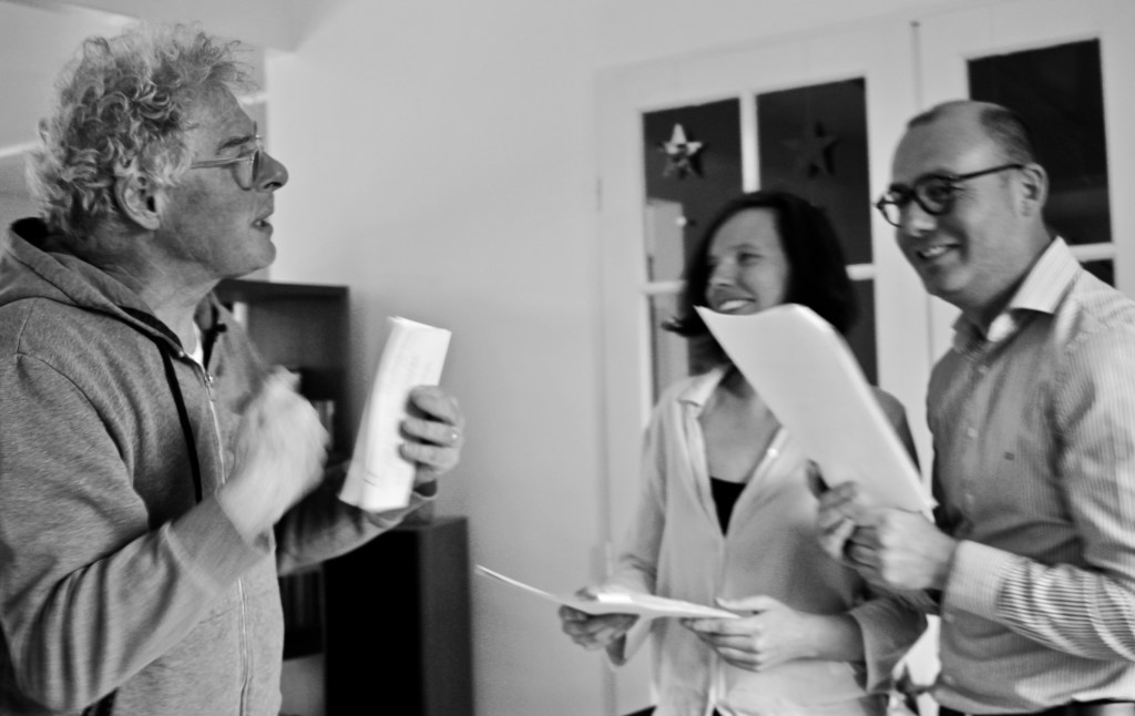 “J’ai été assez directif dans ma façon de procéder, dans le choix des textes, le montage des scènes et la répartition des rôles, parce que je ne voulais pas qu’on perde trop de temps à le faire ensemble, et parce que je pensais que, paradoxalement, les lecteurs seraient plus libres dans l’interprétation de rôles qu’ils n’auraient pas choisis eux-mêmes. Et oui, ça a plutôt soulagé tout le monde ! On y est allé vite ! Même les plus petits sautaient de réplique en réplique comme des cabris. Au travers de cette courte expérience, j’espère avoir pu témoigner du fait que le théâtre n’est rien d’autre que ce qu’on y met de sa propre vie, que les personnages ne sont rien d’autres que les gens qui les incarnent, qu’on soit comédien, comédienne confirmés ou acteur, actrice de circonstance. Et c’est cet instant de sincérité et de générosité qui fait traverser le miroir au public, sous les dorures d’une vaste salle de théâtre comme dans le confinement d’un petit salon familial.”